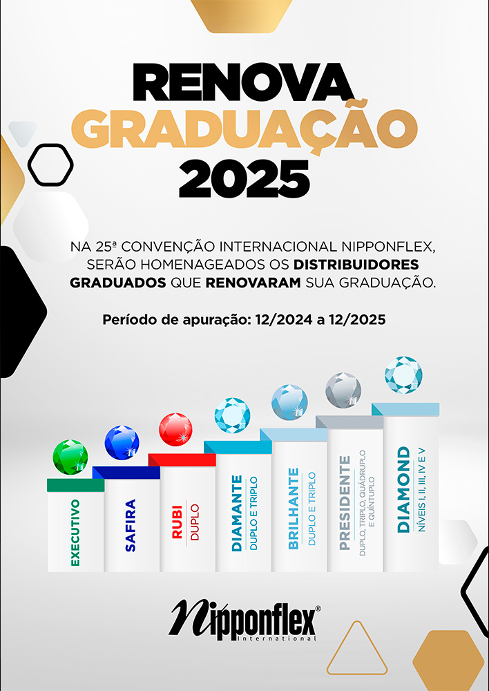 A 25ª Convenção Internacional Nipponflex é o ápice desta celebração, um momento para honrar cada passo dado, cada desafio superado e cada vitória alcançada. É a oportunidade de reafirmar nossa liderança no mercado e fortalecer os laços que nos unem como uma grande família.